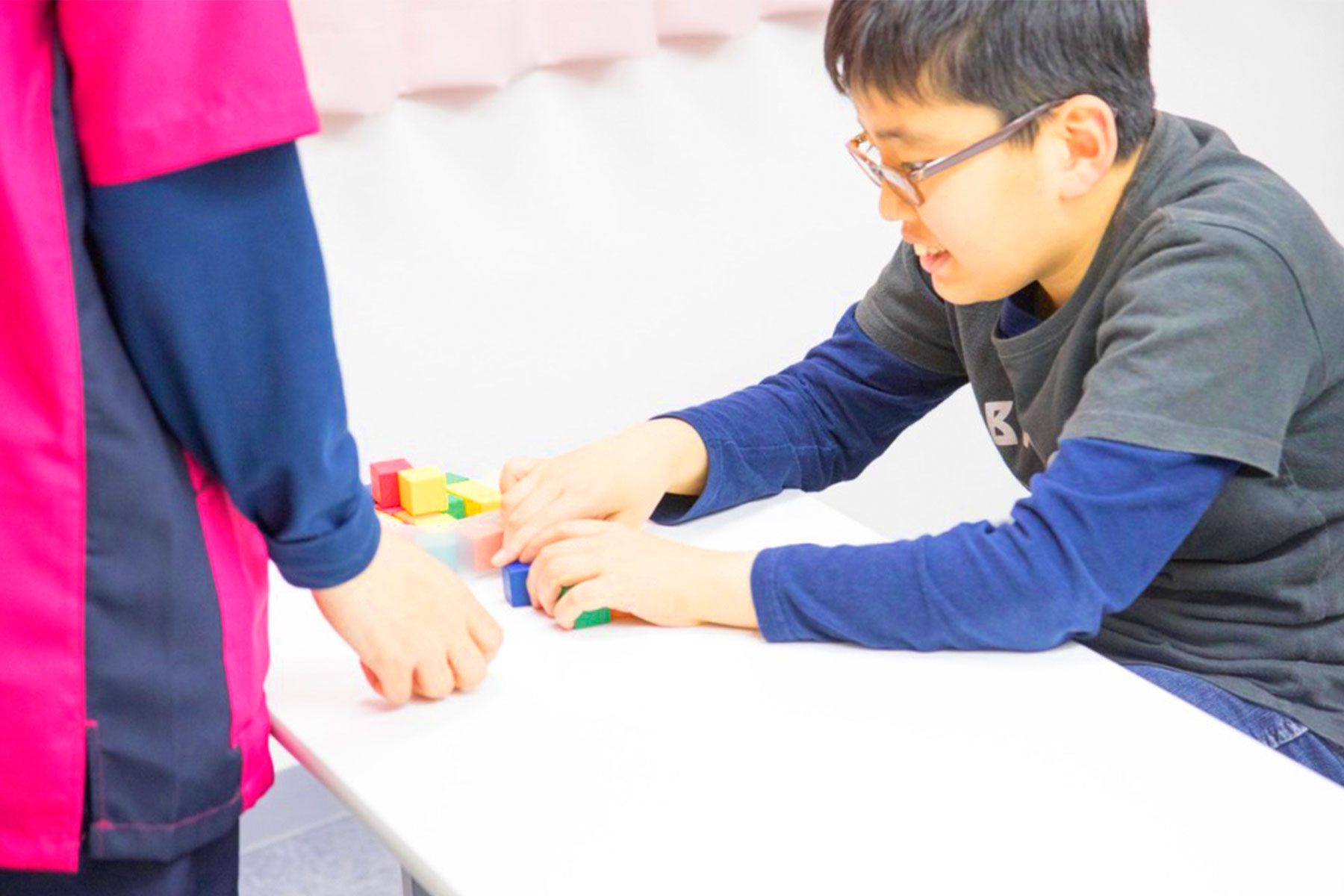 知的障がいを伴う自閉症、強度行動障がい児のお子様を対象に、視覚や手先を使った療育プログラムを行っています。