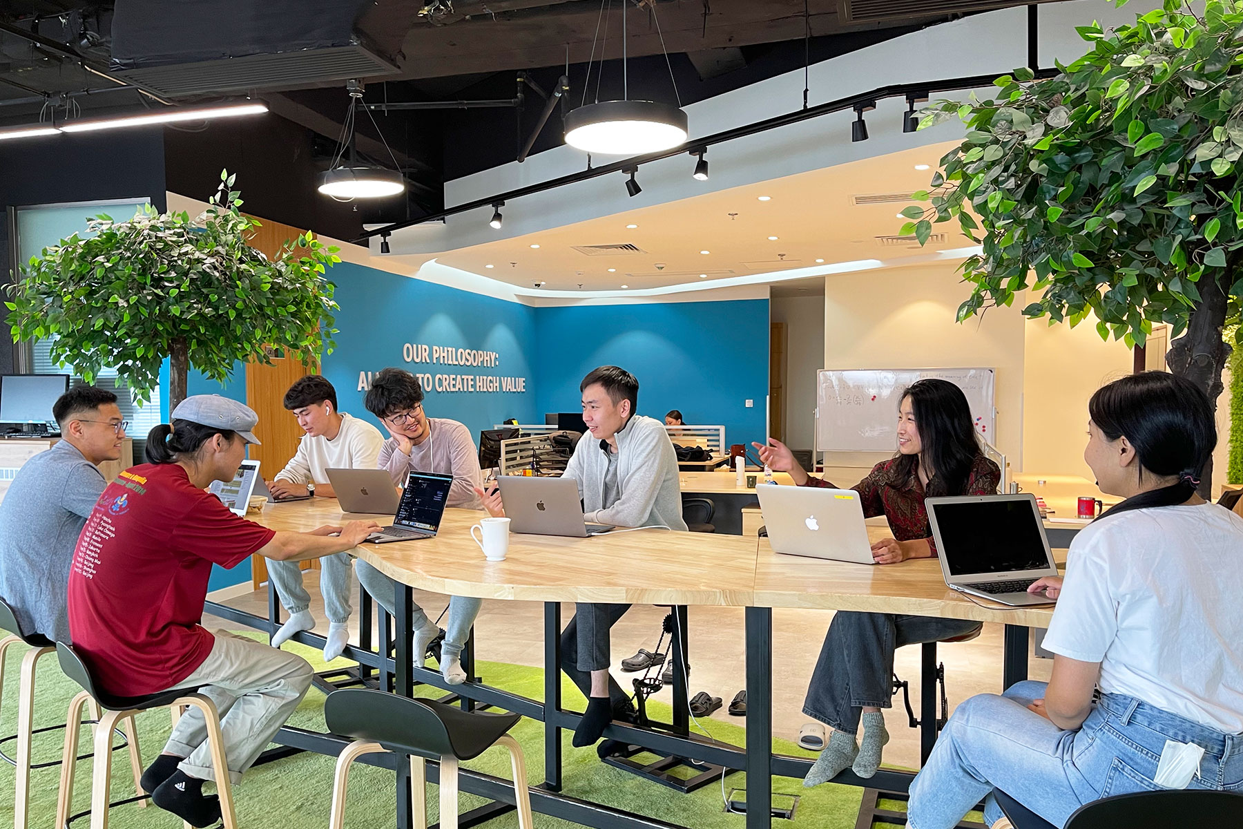 顧客への価値提供を支えるのは、ベンチャーならではの挑戦を歓迎する風土や小回りの利く社風。リモート下でもこまめにコミュニケーションをとっており、意思決定が早いです。 モンゴルに開発拠点を設けていることから、社内には外国籍の社員も多数。多様性のある環境の中で、モチベーションが高くチャレンジ精神旺盛なメンバーが活躍しています。たとえばエンジニアがプロジェクトマネージャーを希望すればチャンスを与えるなど、会社としてメンバーがやりたいことを尊重することで、社員の成長にもつなげています。