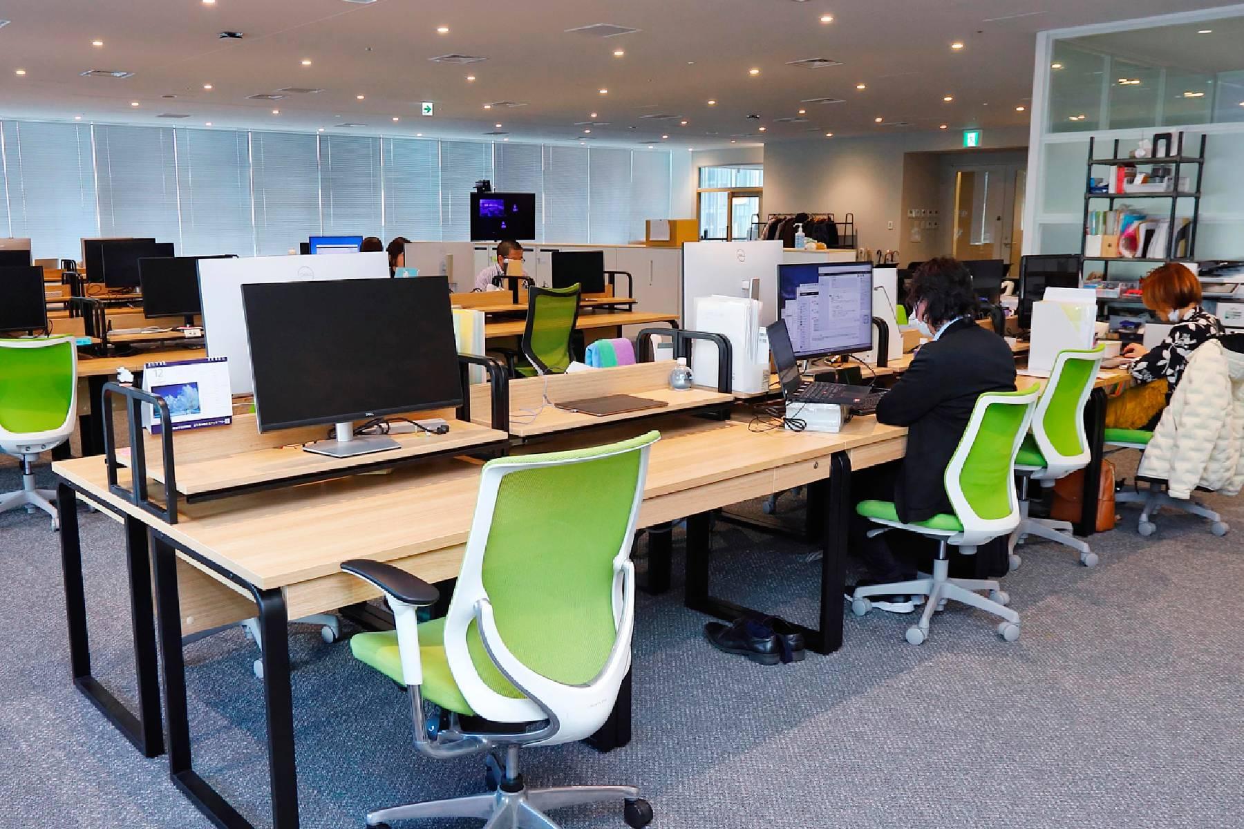 出社とリモートワークを組み合わせて、社内コミュニケーションには『Chatwork』を活用。気軽に質問や相談を行いながら業務に取り組んでいます。部署を跨いでのコミュニケーションも活発で、雑談スレッドで趣味などについてもオープンに話せる雰囲気です。