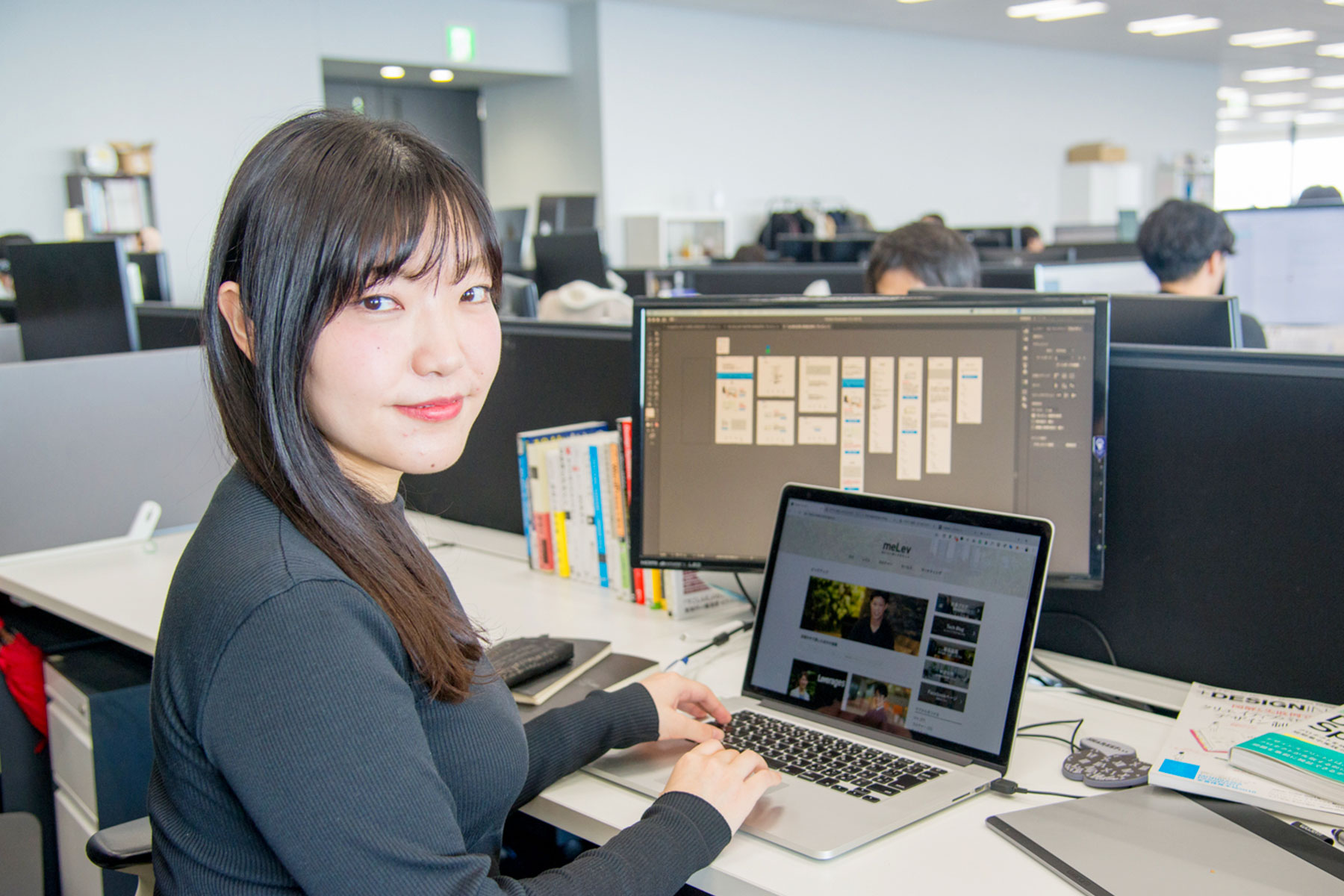 規模が大きい会社ならではの決定までのもたつきがなく、大きいながらに小回りが効く会社です。まだ発展途上がゆえに、組織づくりに貢献することも可能で、プロダクト作り、組織づくり、企業ブランディングなど、会社の全てにデザイナーとして貢献できます。 特にマーケ、エンジニア、営業、デザイナーがかなり近い距離で事業を共につくっているため、互いに教え合い、学び、刺激しあえる環境です。