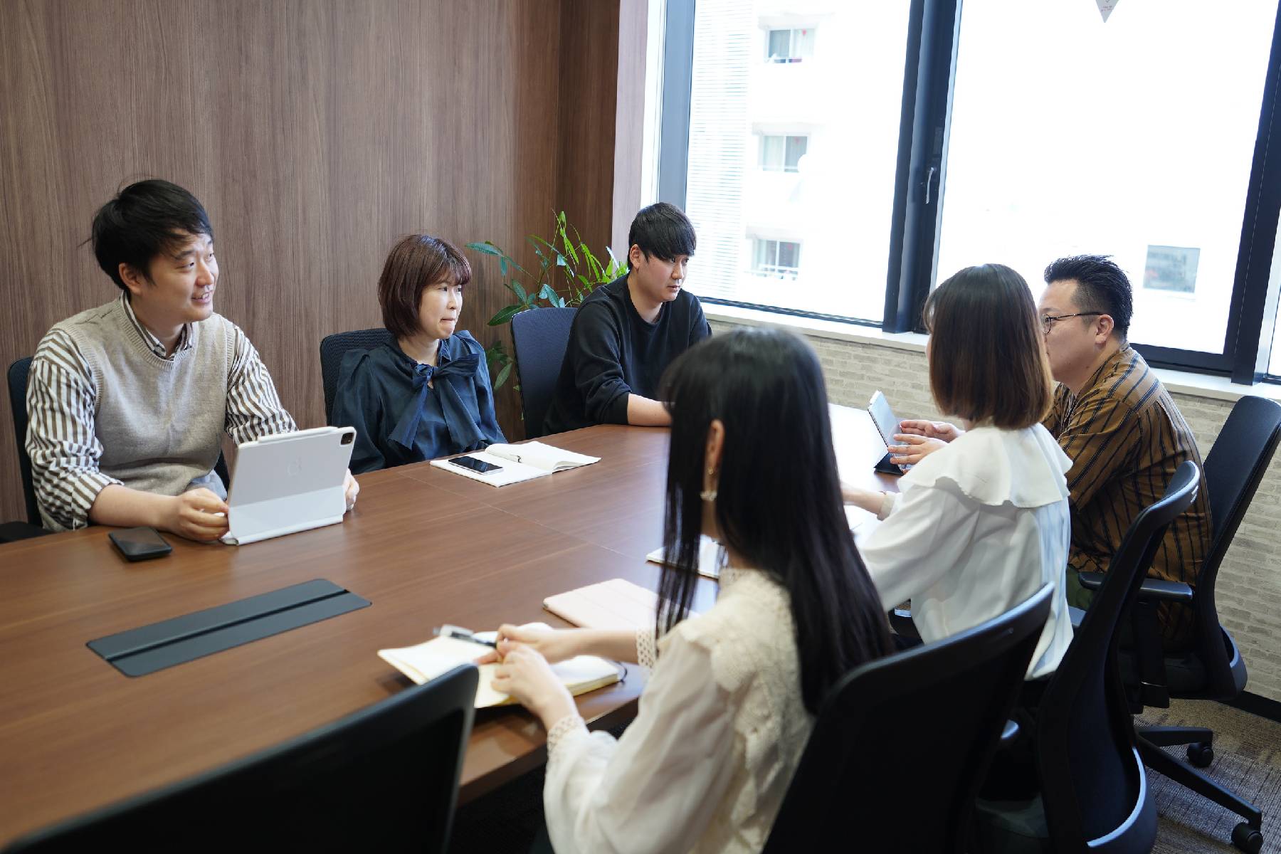 また、社員同士の意見・情報交換も大切にしており、個々が意見を提示しやすい環境です。マーケット分析やプランナーのアイデア提起に基づき、具体的な仕様や実現性について社員全員で話し合っています。