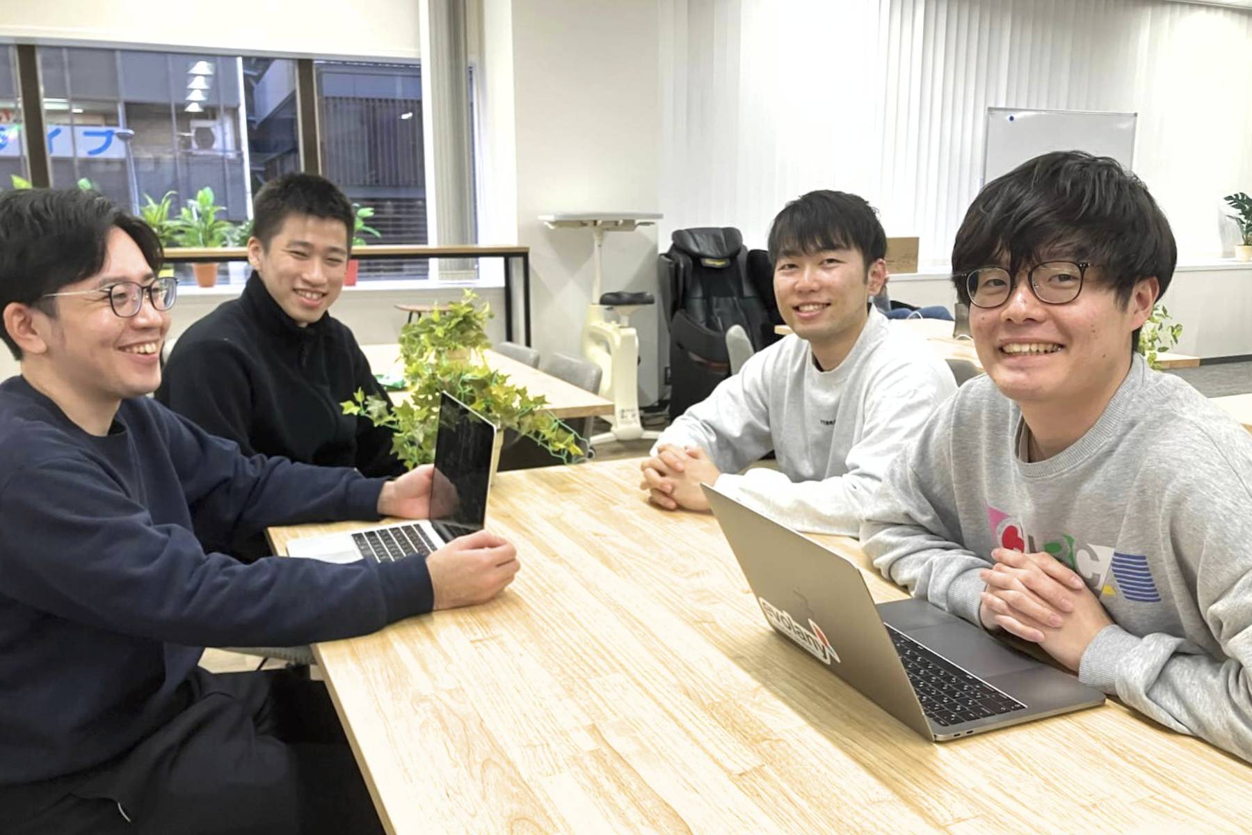 <制度> ・昇降式デスク、サイクリングデスク、マッサージチェアなどを取り入れたオフィス ・イベント/パーティーなど部署間の交流も活発