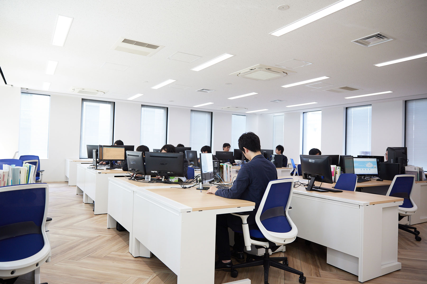 ■ 配属:事業部ソフトウェアチーム ・業務委託を含めて、30~40名のメンバーが在籍しています ・正社員の平均年齢は、27~28歳です ■ 現場・社員の雰囲気 ・少数精鋭の組織なので、それぞれが強みを活かして活躍しています ・平均年齢28歳で、互いに切磋琢磨しながら仕事に取り組める環境です ・社長との距離が近く、直接業務指示を受けることもあります ・チームや職種ごとに、進捗確認や情報共有のためのミーティングを随時実施しています ・壁一面に本棚があり、仕事に関係する書籍の大半が揃っています