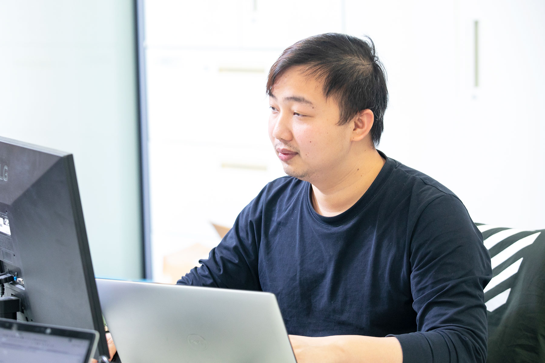 ■ 配属先:開発部 ■ 開発環境 ・イヤホン使用OK、フリーソフト使用OK ・1,900×1,200以上のモニターを提供 ・ノートPC、モニタ別途支給 <開発内容> ・自社製品/自社サービス、B2C、B2B、業務システム/パッケージ、スマートフォンアプリ、ミドルウェア、Win/Macアプリケーション、機械学習、データベースの設計、チューニング、ネットワーク設計 ■ チーム詳細 ・エンジニア13名で構成されています(2023年8月時点) ・開発チームは少人数ですが、拠点が東京(2名)と大阪(11名)に分かれています ・25歳~35歳のメンバーで構成されています ・少数精鋭のため基本的に全員でプロジェクトを進めますが、それぞれ得意分野を持っています ・一人ひとりがお互いを高め合うために、頻繁にコードレビューを実施し、勉強会を開催しています <職種内訳> ・マネージャー:1名 ・CTO:1名 ・リーダー:2名 ・サブリーダー:2名 ・メンバー:7名 ※2023年8月時点 ■ 現場の雰囲気 ・全員に平等にチャンスと可能性が与えられています ・社歴や年齢に関係なく、実力、現時点での頑張りからみえる将来性なども評価対象としてみています ・開発部経費があり、書籍購入や飲み会に使用しています ・他部署とも同じ部屋で仕事をしており、提言にもすぐに耳を傾けられる位置にいます ・改まったミーティングをしなくても、全員が情報共有できる距離感を大切にしています ・基本営業であっても開発であっても、個人やチームで目標を決める文化があります ・できなくてもいいからやってみようという、挑戦的な雰囲気があります ■ 評価制度 ・多くの企業が、売上実績や時間などでメンバーの頑張りを評価していますが、結果だけでなくプロセスも重視しています ・上司だけでなく、ほかの先輩、同期たちからの評価を受ける制度を導入しています ■ コアバリュー ・常識に縛られない自由な生き方を作ることを大事にしています ・世間の評価を第一に考え、それに従い行動することを良しとせず、心に従い生きていくことを目標にしています ・世間から嫌われることを恐れず、同じ志を持った仲間と共に、心のままに生きていくことで、もっと幸せな社会を作ることを目指しています