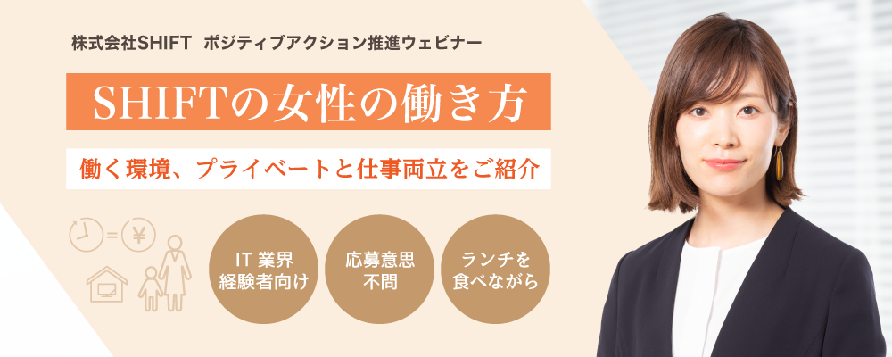 <ウェビナーのご案内> 家族へ自分の会社への転職を勧める――給与、働き方、人間関係、いずれをとっても、満足度が高いがゆえにできることです。実は当社は、従業員が自身の家族や身内にSHIFTへの転職を勧めるケースが多く見られます。その中の一人、パートナーへのリファラルを行った従業員が登壇。家族へ入社を勧めたくなる職場とは?その魅力を知っていただけるウェビナーです。
