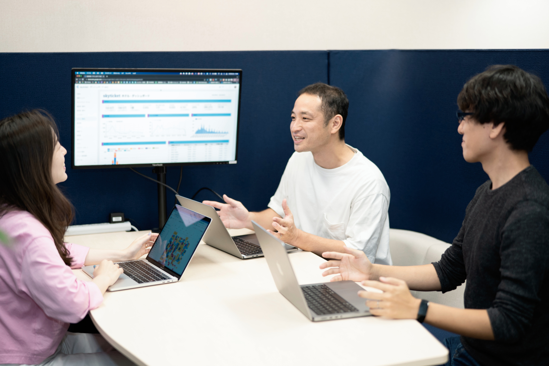 ※開発業務をオフショアに依頼し、その前後の工程の要件定義・仕様設計・受け入れや工数管理などを日本側で行います。Slackやブリッジエンジニアを交えたMTGで英語でコミュニケーションを行います。入社時点で話せなくても大丈夫ですが、日本語以外でのコミュニケーションに抵抗がない方や今後話せるようになりたい方が望ましいです。