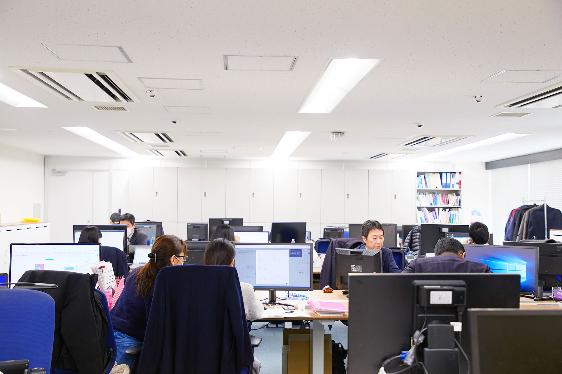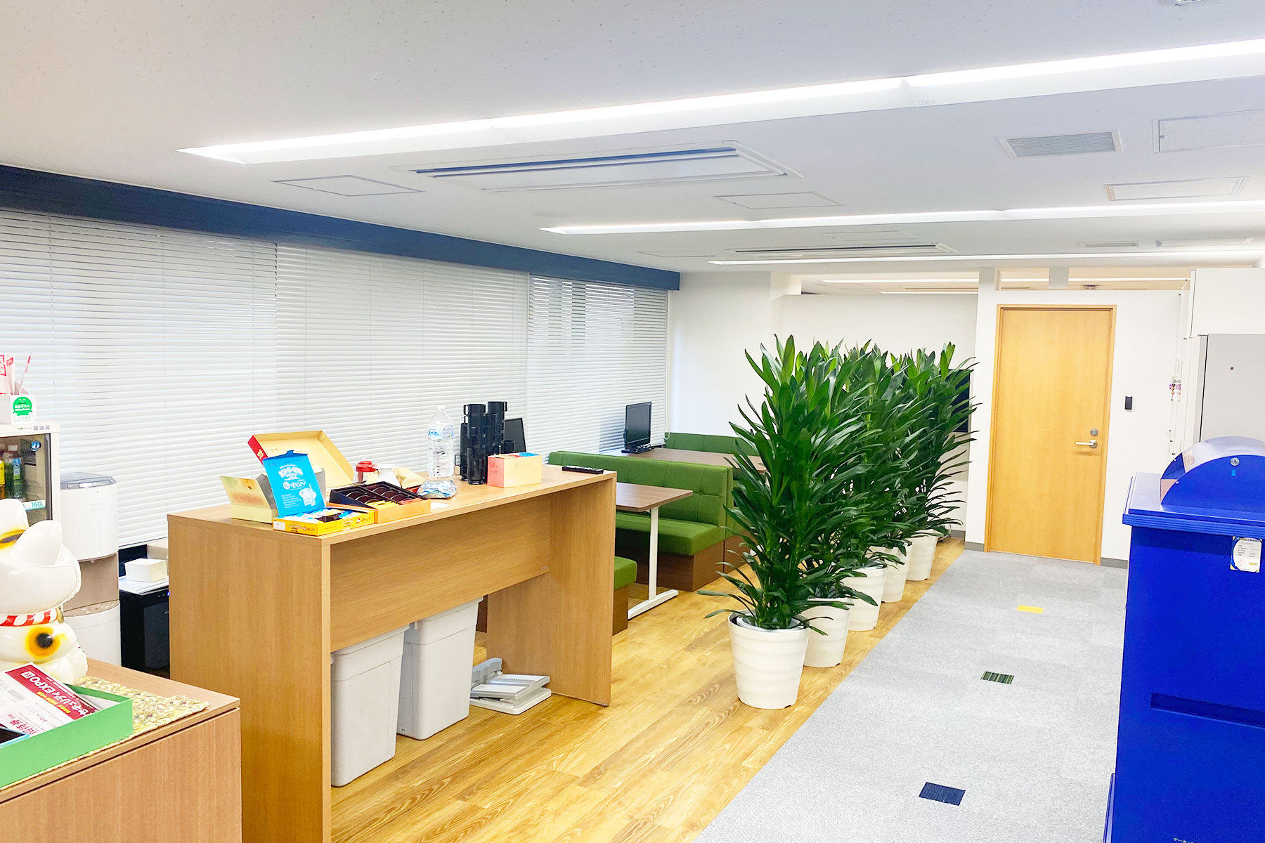 ワークスペースは広々としており、オフィスはフリーアドレスです。
