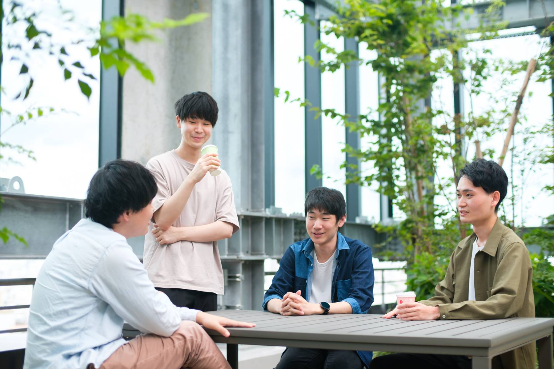 <1日の流れに関して> ・週1回、全社朝礼を実施し事業全体の動向を把握します ・毎朝、開発本部会議を実施し各個人ごとの気付きを共有します ・その後はプロジェクトごとにデイリーミーティングを実施し業務を進めます